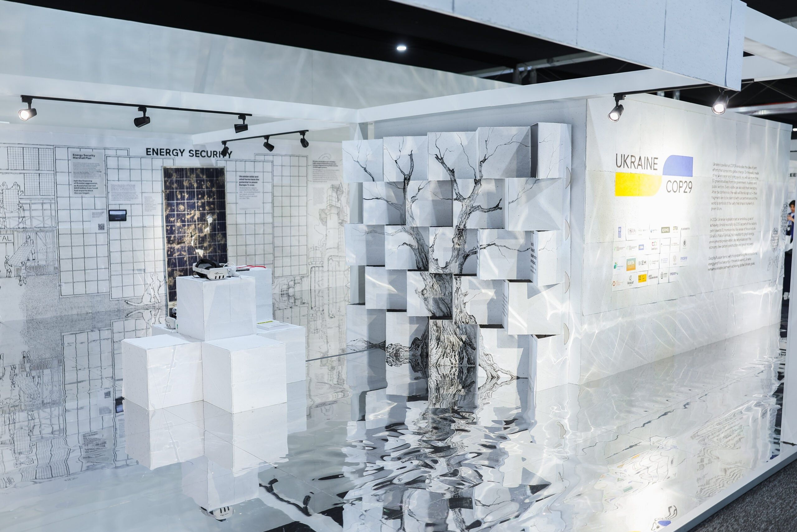 З 11 по 22 листопада в Баку пройде 29-та Конференція ООН зі зміни клімату (COP). Павільйон України цього року зосереджений на темі відновлення — його стіни створені з екологічного паперу з живим насінням. Після завершення конференції фрагменти стін висадять у країнах-партнерах України як символ спільних дій, що проростають у майбутнє.